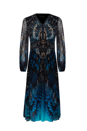 Rabanne long dress features a flattering V-collar that opens up the neckline, creating an elongating effect that draws attention to the face and collarbones. This positioning printed long dress is an effortlessly elegant piece that combines bold design with a timeless silhouette.