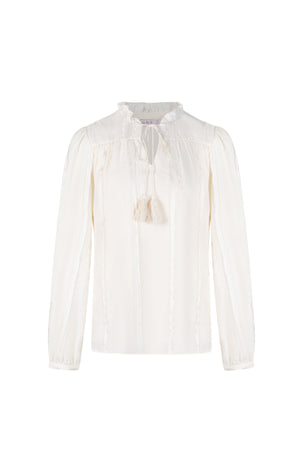 One of the most striking elements of this blouse is the mint leaf collar and neckline, which exude a sense of fresh, natural beauty. The collar's gently curved, leaf-inspired design frames the face beautifully, offering a soft yet structured shape that adds a modern twist to the blouse's classic silhouette. The unique blend of comfort, refinement, and detail makes this blouse an ideal choice for layering, dressing up, or down, and its exquisite features set it apart as a statement piece in any collection. - Lined