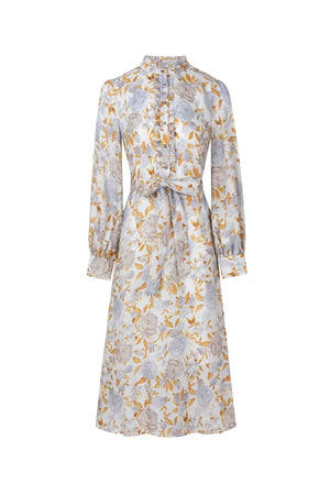 Lilou dress is crafted from lightweight, breathable linen, which gives it a natural, slightly textured feel. Linen's breathable nature makes it ideal for warm weather, offering a relaxed, casual vibe that drapes gracefully over the body while maintaining a cool, airy feel. The flounce collar adds a touch of femininity and playful elegance, gently ruffling around the neckline for a soft, romantic look. The printed pattern infuses the dress with energy, making it ideal for casual outings or outdoor events. The colors are typically vibrant or soft, complementing the natural hues of the linen. - Lined