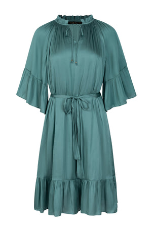 The highlight of this dress is its enchanting mint leaf collar, which adds a refreshing pop of color and a unique touch to the overall design. This beautifully structured collar frames the neckline gracefully, giving an air of sophistication while setting you apart from the crowd. The dress features chic bell sleeves that flow effortlessly with your movements, creating a romantic and whimsical feel that is perfect for any occasion.Step into the spotlight with this stunning solid color short dress, a captivating piece that perfectly marries modern elegance with playful charm. Crafted from a high-quality fabric that feels luxurious against the skin, this dress boasts a sleek silhouette that flatters a variety of body types.-Lined